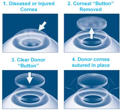 يتم إجراء زراعة القرنية بطريقتين: